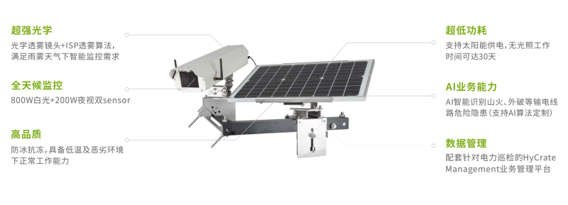 具備邊緣計算能力的通道可視化智能終端,利用光學透霧鏡頭和ISP透霧算法,可以獲取高對比高清晰的圖像,保證在能見度低情況下的巡視效果。通過安裝于桿塔上的通道可視化智能終端,采集輸電通道環(huán)境信息,并識別輸電線路山火、導線異物、外破等危險隱患,及時上傳告警信息,輔助運檢決策,有效保障輸電線路運?安全。