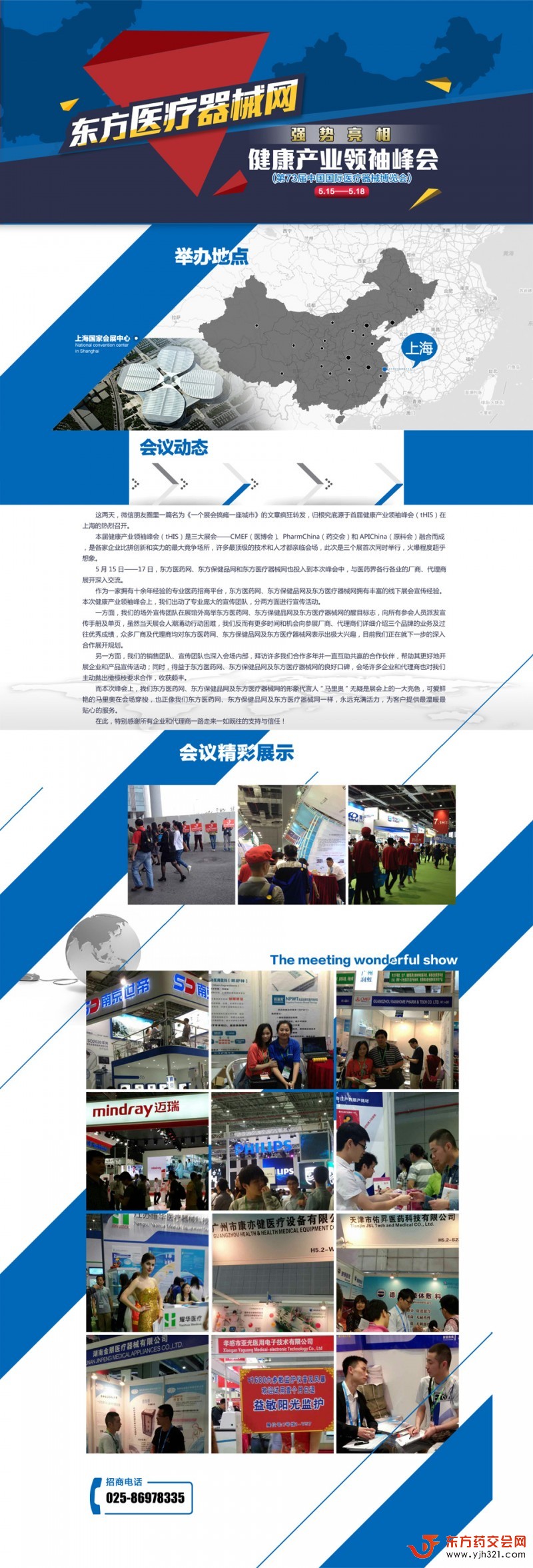 2015年5月15日--17日,上海國家會展中心健康產(chǎn)業(yè)領(lǐng)袖峰會之第73屆中國國際醫(yī)療器械博覽會(CMEF)。